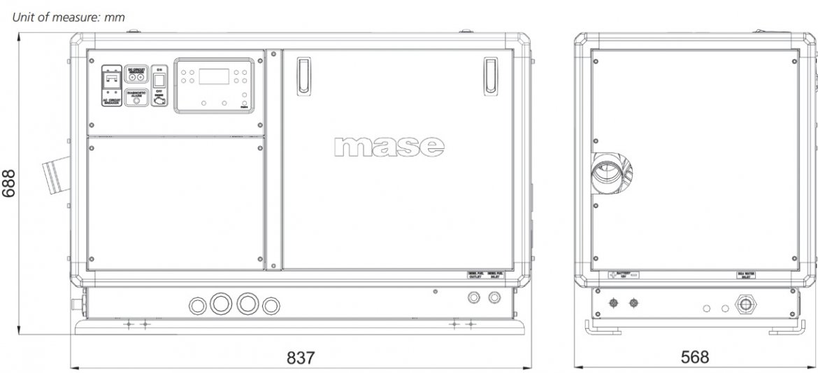 • Cooling system: cupronickel exchanger (heat exchange between coolant liquid and sea water)