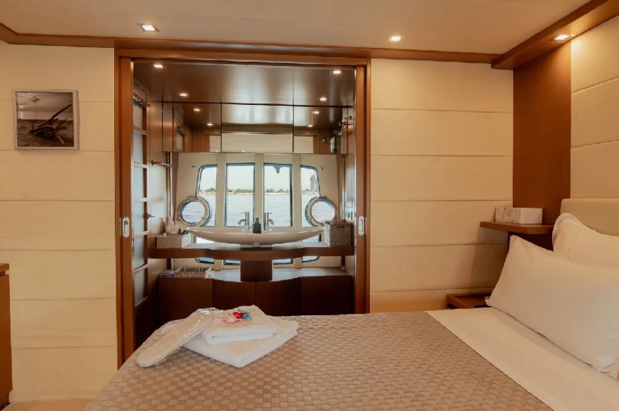 The charter yacht benefits from its lovely mooring location in the port of Kalamaki,Lavrio,Kos,Rhodes Skiathos,Lekfas-Preveza.Mykonos,Paros from where you have wonderful opportunities for various charter itineraries.