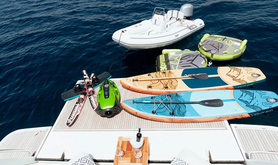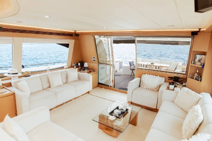 Both exterior and interior spaces are thoughtfully designed for relaxation and entertaining, ideal for extended cruising or short, indulgent escapes.