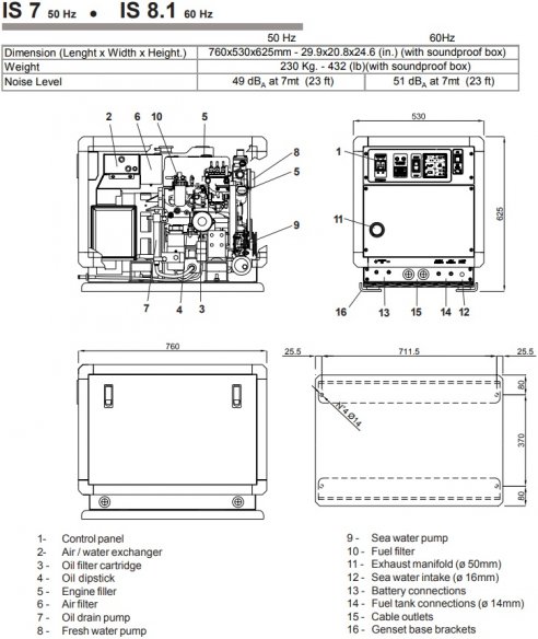 Mase diesel marine generator IS 7 (7 kv) 50 hz 1500 RPM with Intercooler System ,Soundproof for sale in Greece by Aibsailing