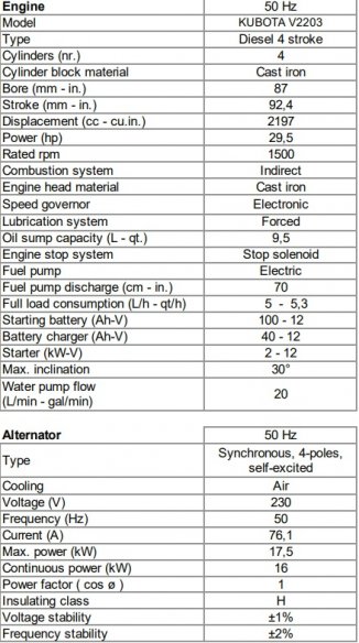• Synchronous, 4 poles, brush less self-excited, electronic voltage regulator (AVR) .