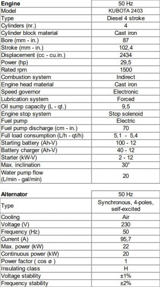 • Synchronous, 4 poles, brush less self-excited, electronic voltage regulator (AVR) .