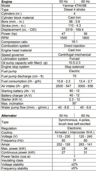 • Synchronous, 4 poles, brush less self-excited, electronic voltage regulator (AVR) .