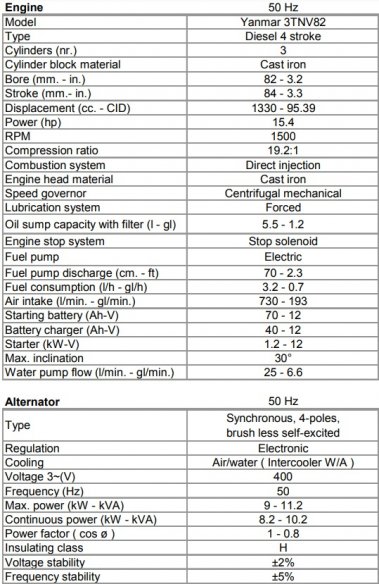 • Synchronous, 4 poles, brush less self-excited, electronic voltage regulator (AVR) .