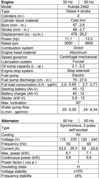 • Synchronous, 4 poles, brush less self-excited, electronic voltage regulator (AVR) .