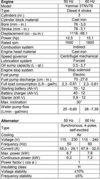 • Synchronous, 2 poles, brush less self-excited, electronic voltage regulator (AVR) .