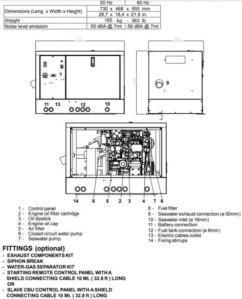 Mase diesel marine generator Mariner 1200 S (one phase range 11.2 kv) 50 hz 1500 RPM with Intercooler System ,Soundproof for sale in Greece by Aibsailing