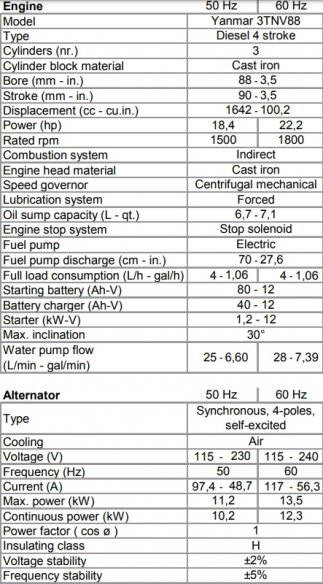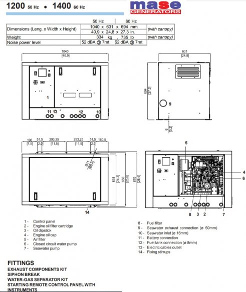 Mase diesel marine generator Mariner 1310 S (one phase range 13.1 kv) 50 hz 1500 RPM with Intercooler System ,Soundproof for sale in Greece by Aibsailing