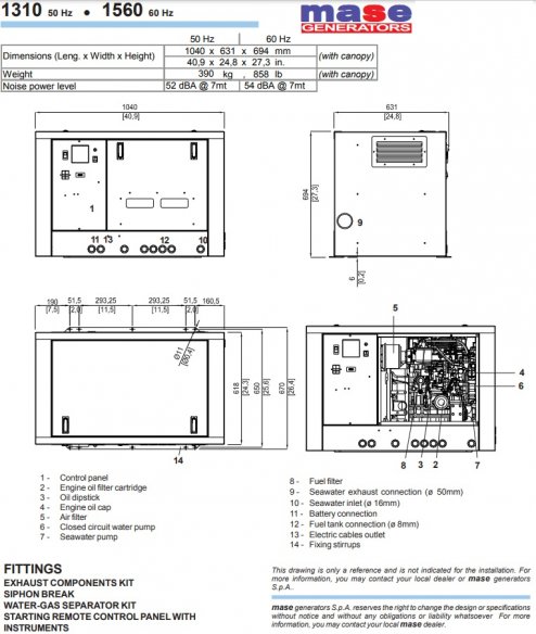 Mase diesel marine generator Mariner 1600 S (one phase range 15.13 kv) 50 hz 1500 RPM with Intercooler System ,Soundproof for sale in Greece by Aibsailing