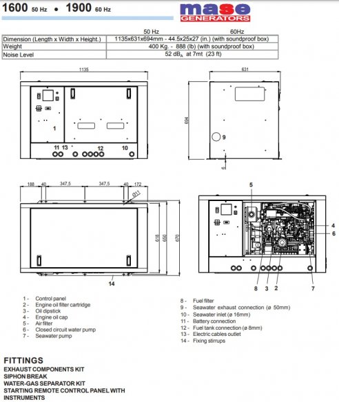 Mase diesel marine generator Mariner 2400 S (one phase range 26 kv) 50 hz 1500 RPM with Intercooler System ,Soundproof for sale in Greece by Aibsailing