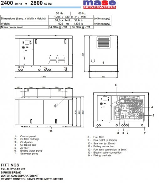Mase diesel marine generator Mariner 2700 S (one phase range 29 kv) 50 hz 1500 RPM with Intercooler System ,Soundproof for sale in Greece by Aibsailing