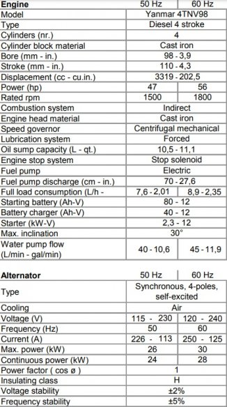 • Synchronous, 4 poles, brush less self-excited, electronic voltage regulator (AVR).
