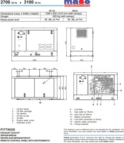 Mase diesel marine generator Mariner 1450T S (Three phases range 14 kv) 50 hz 1500 RPM with Intercooler System ,Soundproof for sale in Greece by Aibsailing