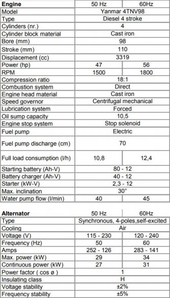 • Synchronous, 4 poles, brush less self-excited, electronic voltage regulator (AVR).