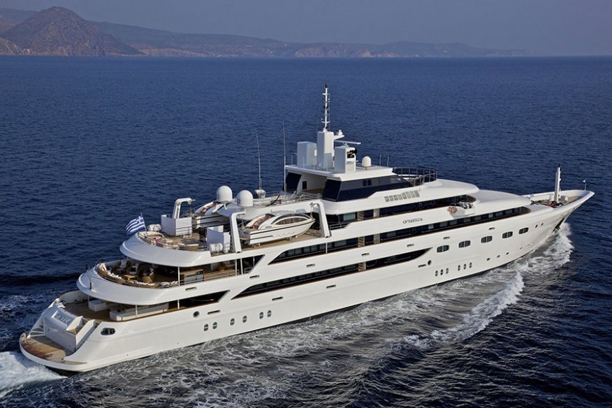 Mega Yacht O Mega for Crewed charters in Greece and Mediterranean by Aibsailing. Mega Yacht O Mega With an interior and exterior styled by the Italian design house Studio Vafiadis, O’MEGA exudes an effortless finesse which makes her the perfect choice for a private yacht charter with up to thirty guests. Following her extensive 2015 refit, her elegant, contemporary décor, 6 voluminous deck spaces and entertainment system have made her a popular charter yacht. From the spacious main salon through to the elegant dining room and the VIP salon, there is a sense of sophistication which helps to establish an appropriately luxurious ambience...With accomodation on 14 cabins 1 Master stateroom 1 Executive stateroom 4 double VIP suites 5 double guest cabin 5 twin guest cabins with service of 30 pax of crew