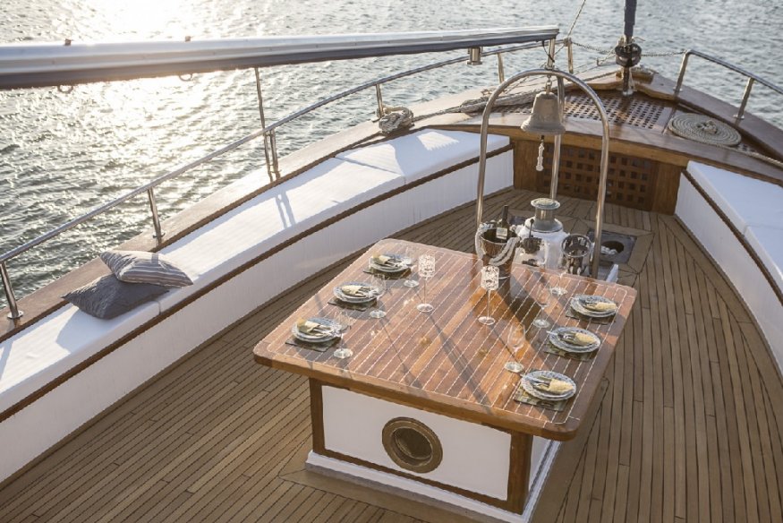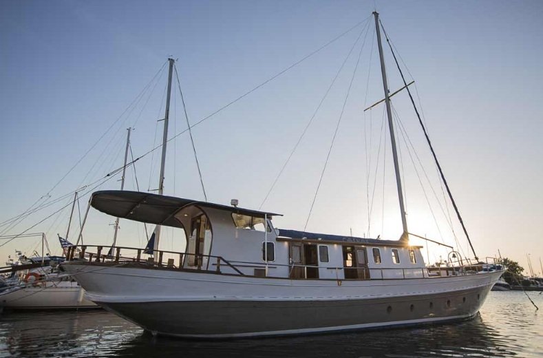 Motor Sailer Cosmos for crewed charter in Greece by Aibsailing. Sailing gulet Cosmos was delivered in 1979 by the Greek shipyard Mavrikos Bros. and refitted in 2016, the yacht measures 24.8m (81’4’’) overall. Accommodation is provided in 4 cabins, for up to 9 charter guests.